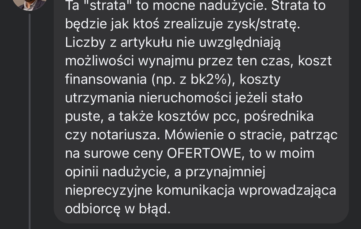 Nigdy nie zagłosuję na typa, który wiedząc z pierwszej ręki jak bardzo rozwalony jest rynek mieszkaniowy np. właśnie w stolicy, jaką masakrę zrobiła beka 2%, patodeweloperka, spekulacja czy "ynwestorzy" w najem na doby - mówi, że "rozważa" podpisanie kolejnej rundy dopłacania do kredytów, tylko "musi uważnie przeczytać projekt".