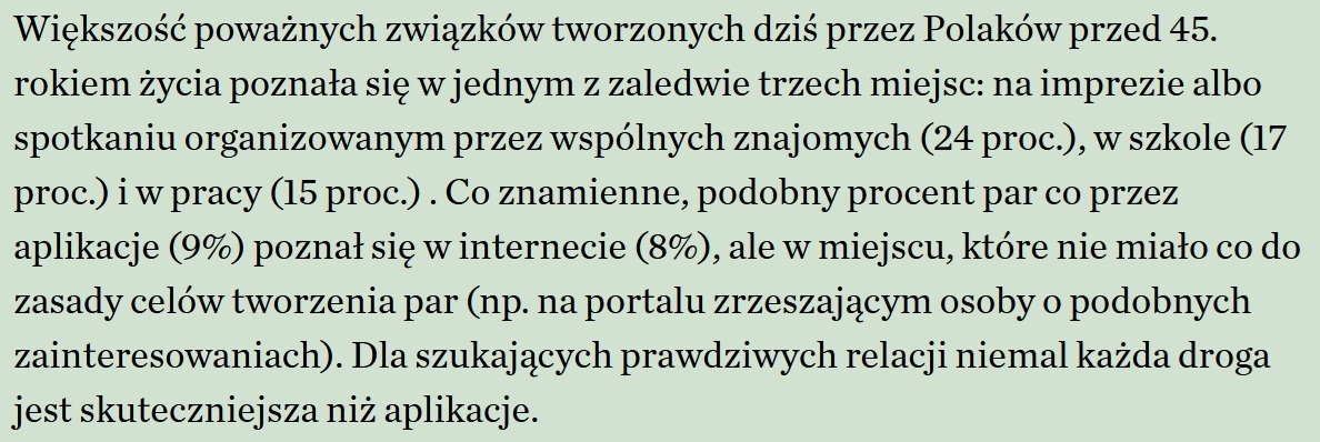Generalnie to spotykam się od miesiąca z dziewczyną o wiele mniej urodziwą niż przeciętna baba z Tindera. I na pewno jej się bardzo podobam, i to zupełnie inny poziom doświadczenia w kontaktach z kobietami. Sama dzwoni, pisze, szanuje się (jeszcze nie spaliśmy razem mimo dwóch spotkań i wspólnych nocowań) ale widać że jest totalnie za mną i ma przyjechać na święta. No dosłownie kobieta lata za mną. Z twarzy totalnie przeciętno-brzydka ale