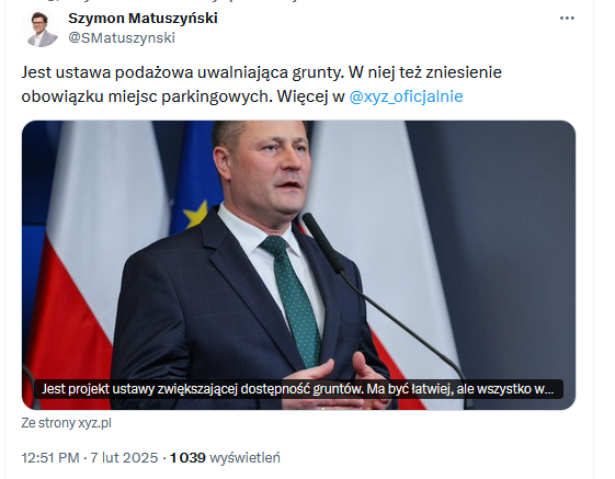 Po tym jak zielone ludziki próbowały znieść limit miejsc parkingowych u stawie powodziowej, teraz Paszyk będzie próbował to przepchnać w ustawie podażowej. Państwo dla deweloperów, rentierów i pseudoprzedsiębiorców.