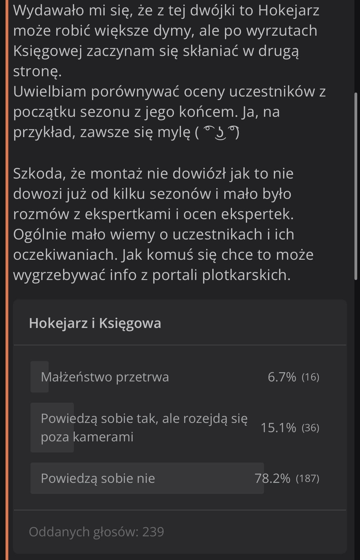 Jutro wielki finał więc wracam do Was z podsumowaniem moich czterech ankiet z początku sezonu.