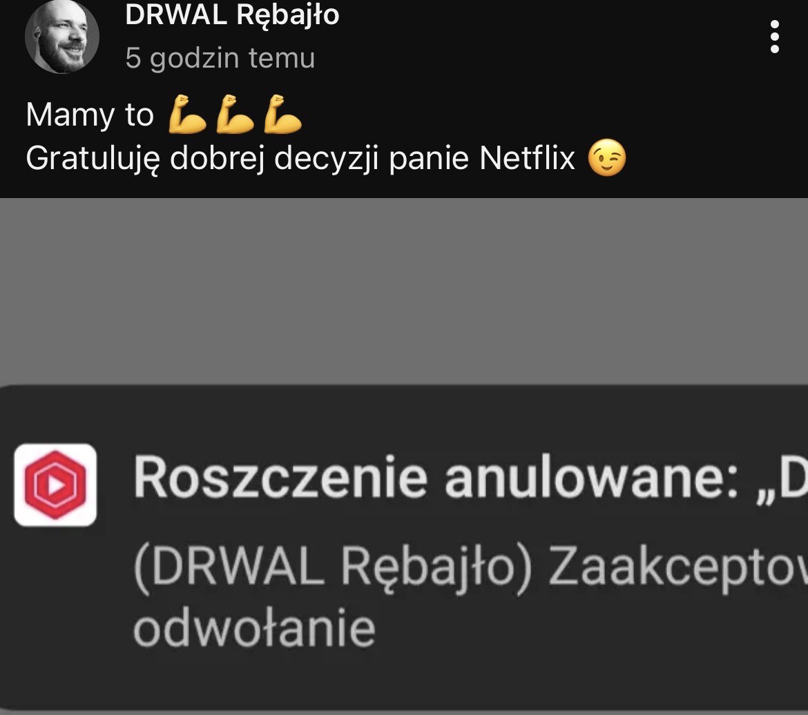 @greedy_critic: Podoba mi się to jak udaje twardziela, że "gratuluje" Netflixowi dobrej decyzji bo inaczej poszliby do sądu. Dobrze wie, że żadnego sądu by nie było ale przed swoją widownią warto poudawać gigachada i twardziela który wygrywa z korporacjami. Niesamowity teatr sobie wytworzył.