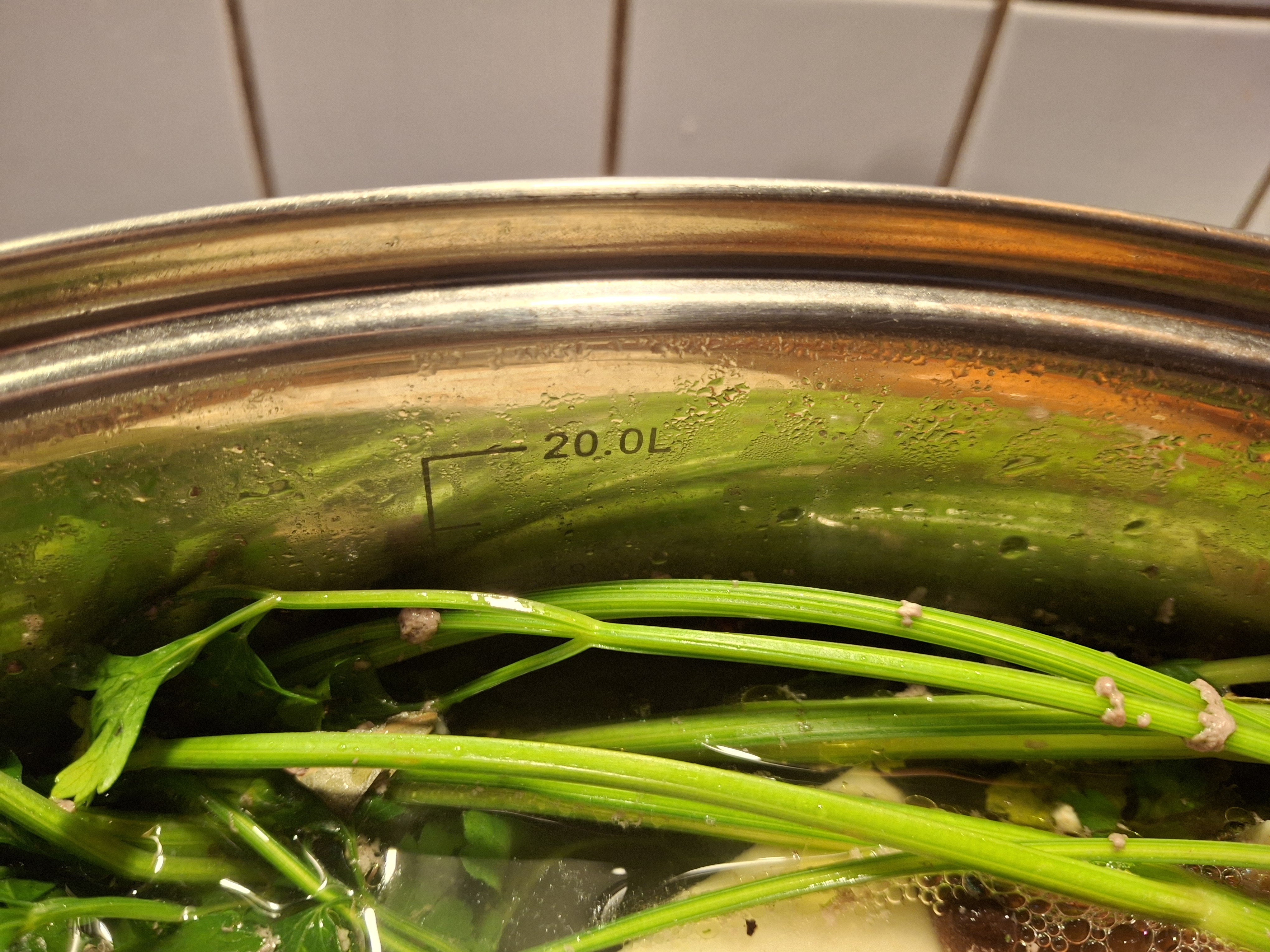 20 litrów rosołu na jutro. Kura od sąsiada, wołowe od gospodarza, jedynie indyk kupny i żołądki drobiowe. Za 5h będzie gotowe