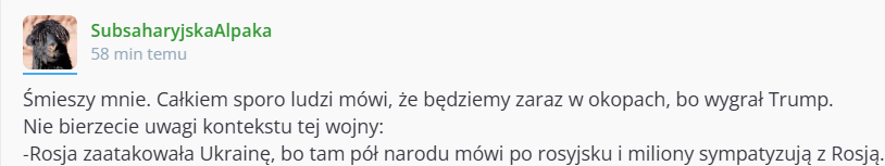 „Rosja zaatakowała Ukrainę, ponieważ miliony Ukraińców sympatyzują z Rosją”.