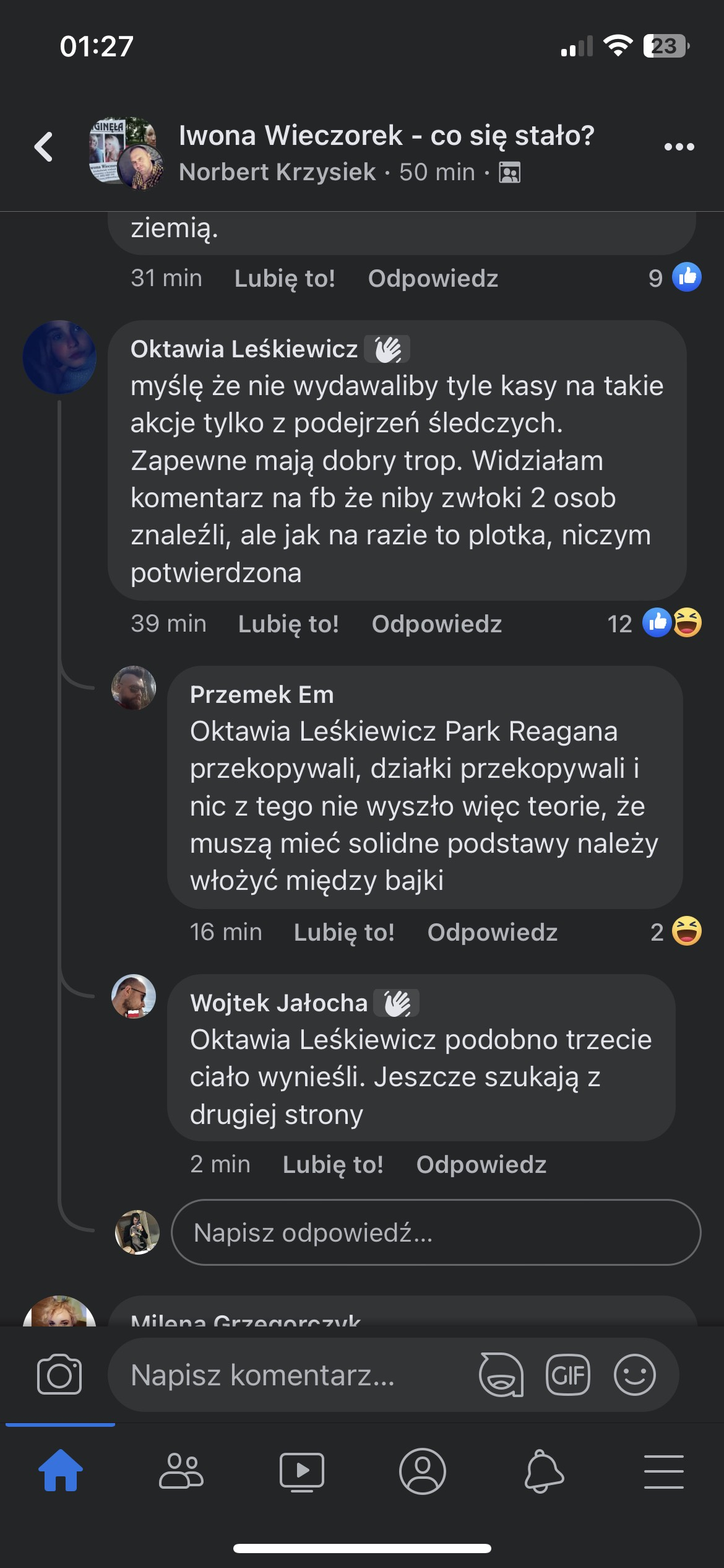 @mcsQ: Mnie zastanawia czy czasem wielu ciekawszych znalezisk nie będzie albo takich co pomogą w innych sprawach. A z Iwoną dobrze by było, żeby się rozwiązało. Dla jej rodziny, z powodu kasy która na to wszystko idzie i żeby może w końcu ktoś beknął za swoje występki. Może też zainteresowanie przeniosłoby się na inną zaginioną osobę, byłoby nagłośnione i by dążono do wyjaśnienia kolejnej sprawy.