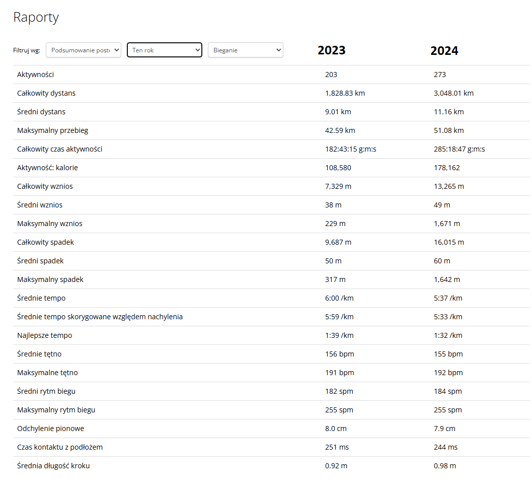 Dodatkowe porównanie statystyk z 2023 i 2024. Robota została wykonana bardzo dobrze ( ͡° ͜ʖ ͡°)