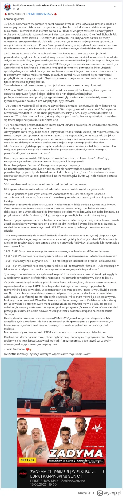 Materiał będzie się składał z 5 rozdziałów: Rozdział 1: Od czego wszystko się zaczęło? Rozdział 2: Znaczenie przejęcia rynku polskiego i europejskiego. Rozdział 3: Udział Influencerów i sponsorów w normalizacji wschodniego biznesu w Polsce. Rozdział 4: Komentarze chroniące. Rozdział 5: Deja vu - Clout MMA, powtórka z historii.