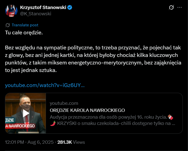 @kukold: otóż to, ja naprawdę rzadko włączam cokolwiek politycznego, ale stawiałbym go na równi z Piłsudskim czy Janem Pawłem wśród pocztu polaków. Ale oczywiście jednak niżej tak wspaniałej osoby jak Jadwiga Kaczyńska.