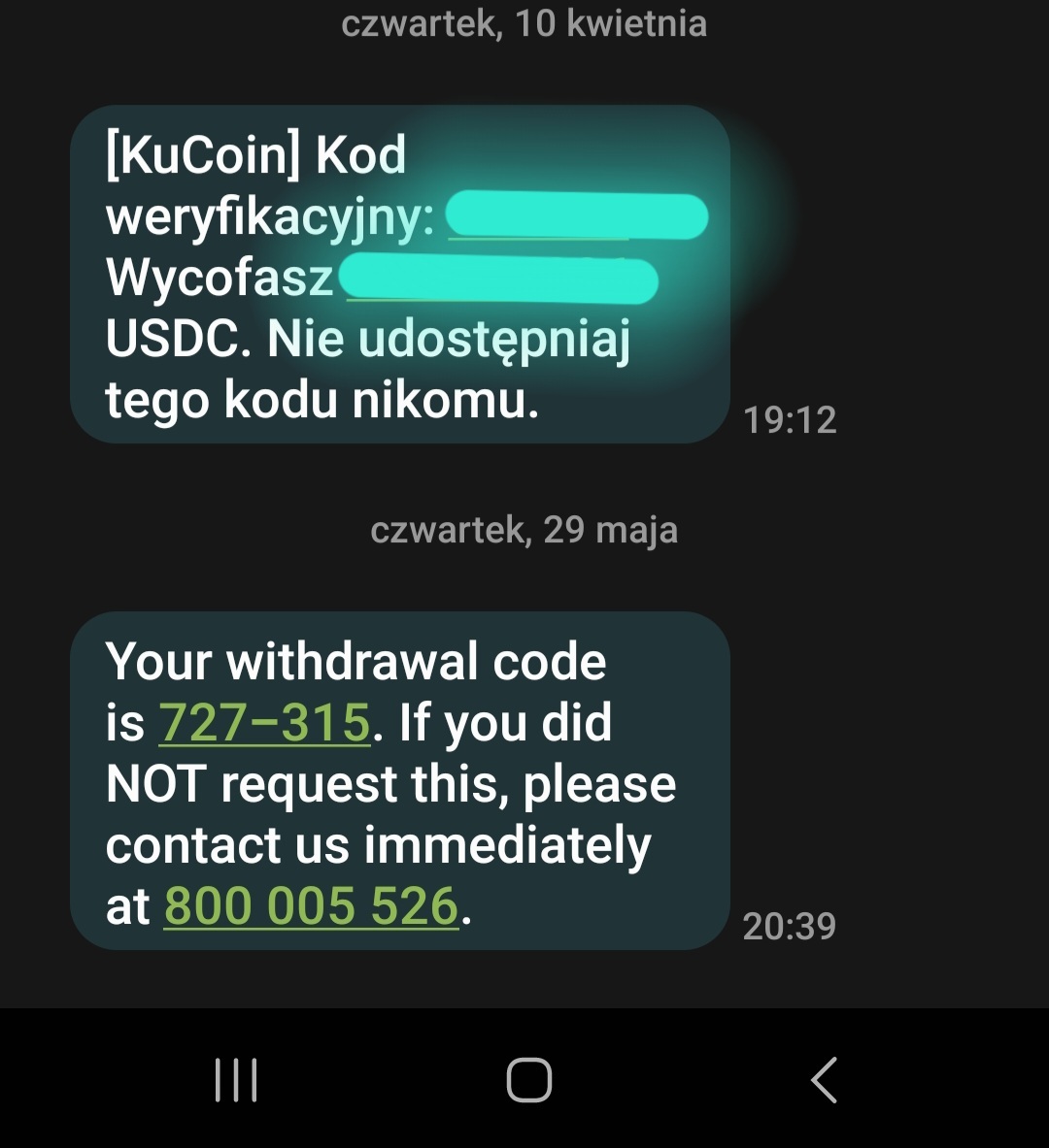 Uwaga na scam sms od KuCoin - wysyłają z tej samej nazwy co giełda i nagle po angielsku. W rejestrze logowania oczywiscie nic nie ma wiec pewnie baza uzytkownikow tylko wyciekła. Nie nie dajcie sie nabrać oszustom