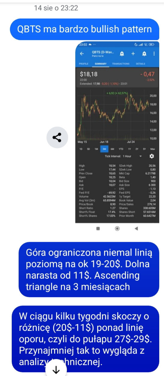 Fakt, finalnie okazało się to układem typu flaga XD, ale czas i pułap cen trafiony. Pisałem z ziomkiem o typach giełdowych.