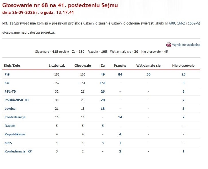 Tylko teraz pewnie PiS głosowałby przeciw w całości. Nie dla dobra psów, ale na złość Tuskowi. I tak to się niestety kręci…