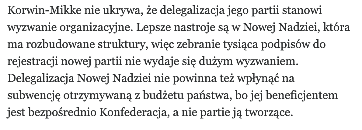 @Absurd_69_: Jak na razie to tylko powtórka manewru z 2020 roku, kiedy odebrano Konfederacji subwencję, ale po zaskarżeniu decyzji w sądzie Konfederacja ostatecznie wygrała i środki odzyskała. Takie pospolite polityczne bicie piany.