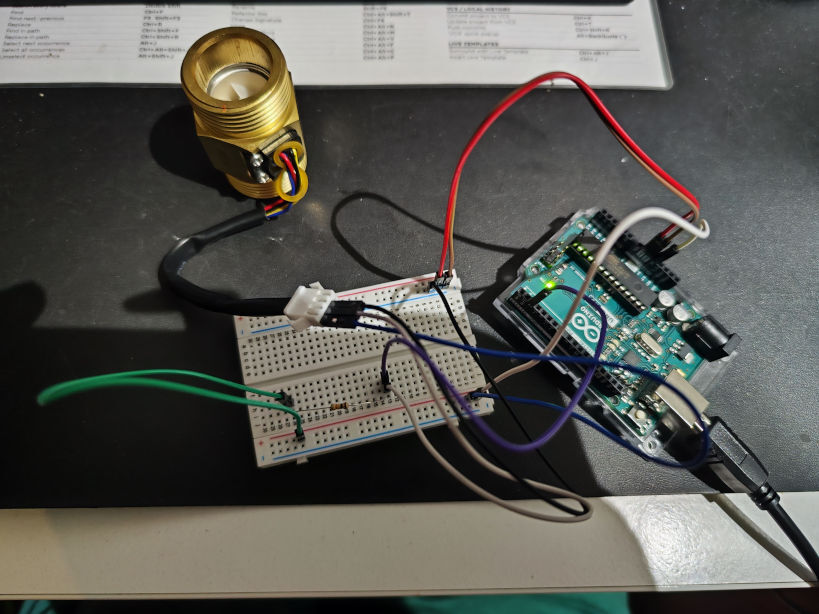 Podłączony przepływomierz, program w wersji dummy ktory tylko reaguje przerwaniem na zmiany w przepływomierzu działa.