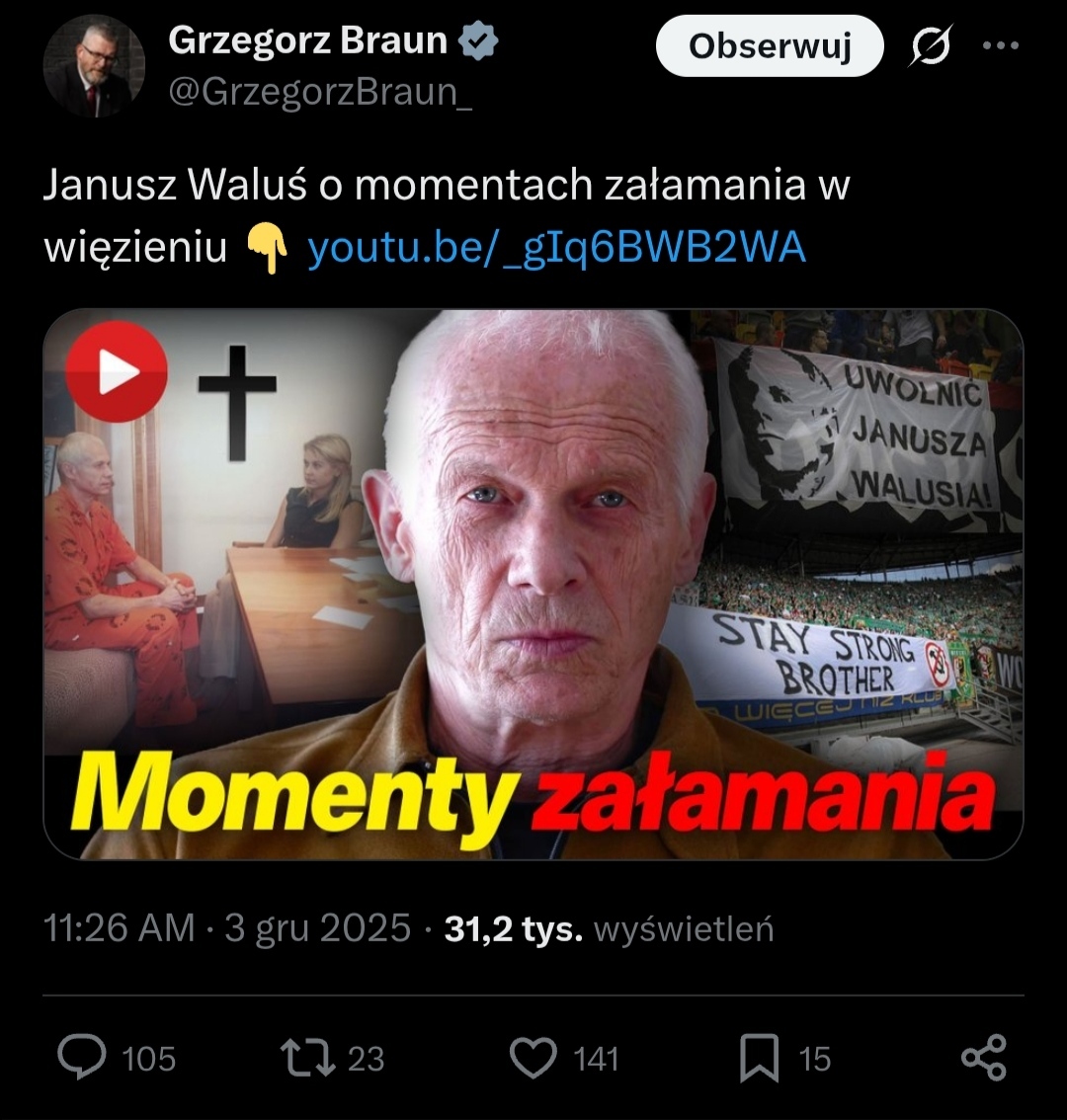 #braun #polityka #bekazkonfederacji ktoś mi wyjaśni #c---------------a ? Mam współczuć mordercy? To jakiś test przed wystawieniem go na listy wyborcze partii Brauna? (linku do filmu specjalnie nie wstawism by nie nabijać wyświetleń)