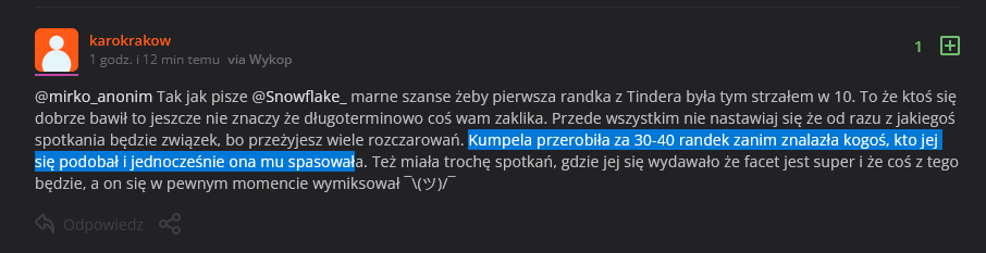 @KonserwatywnyMocny: To mój wujek poszedł do młodej pani doktor z prośbą o rady, bo widzi, że trochę mu przybyło na wadze (całe życie szczupły) i jakoś siły nie ma do niczego, a ona mu powiedziała, jakby to było oczywiste, żeby sobie zamówił catering dietetyczny i wyjechał gdzieś do ciepłych krajów, żeby sobie dostarczyć "witaminki D". Oczywiście jakieś badania też zleciła (swoja drogą wyszło, że wujek ma cukrzycę), ale w ogóle