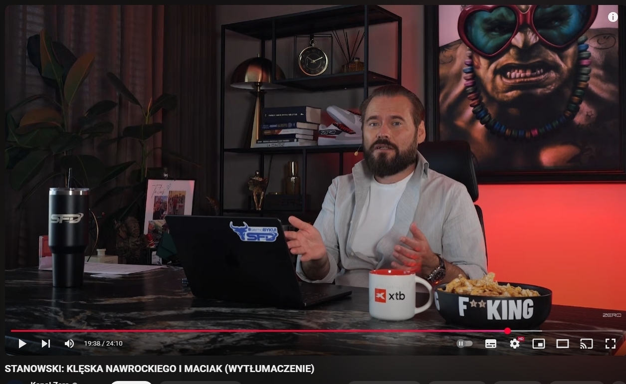 Gdyby Trzaskowski miał taką "aferę", to KZ kręciłby już piąty film z kolei. Jednak gdy chodzi o Nawrockiego, to Stano umieszcza imbę z KN (największą imbę tej kampanii) w jednym filmie z Maciakiem, i to jeszcze w drugiej połowie, który obejrzy mniej osób. Widać z resztą po komentarzach, że 90% z nich dotyczy Maciaka, a nie Nawrockiego.