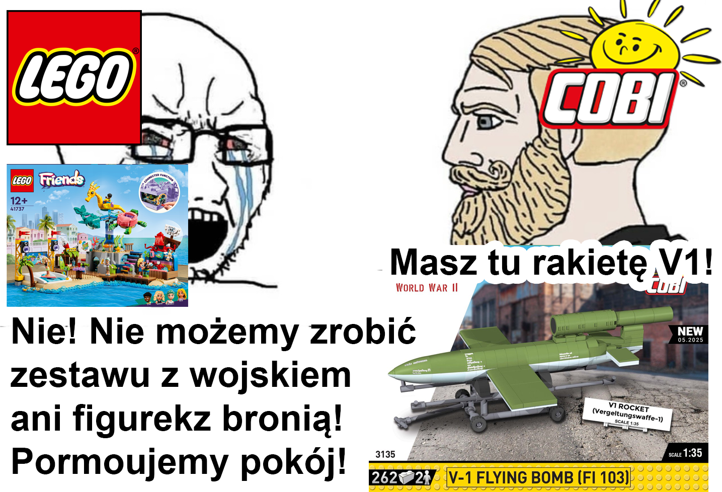 @SynMichaua: Nie, no lego jak wszyscy ma podwojne standardy. Co prawda nie wypuszcza set D-Day ale laserowe karabiny czy inne gwiezdne czolgi to nie problem. Western i rozstrzeliwanie Apaczy tez nie stanowilo przeszkody. XD