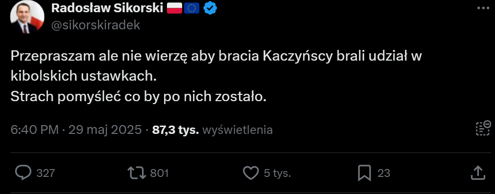 @raul7788: chyba odwrotnie, jak byś śledził politykę to już byś wiedział że PiS to wygrał, jeśli sondaże dają minimalna przewagę Trzaskowskiego to już przegrał bo na wsi siedzi +3% elektoratu który zagłosuję na Nawrockiego. Przegra i to ponad 2-3% to już jest po zawodach