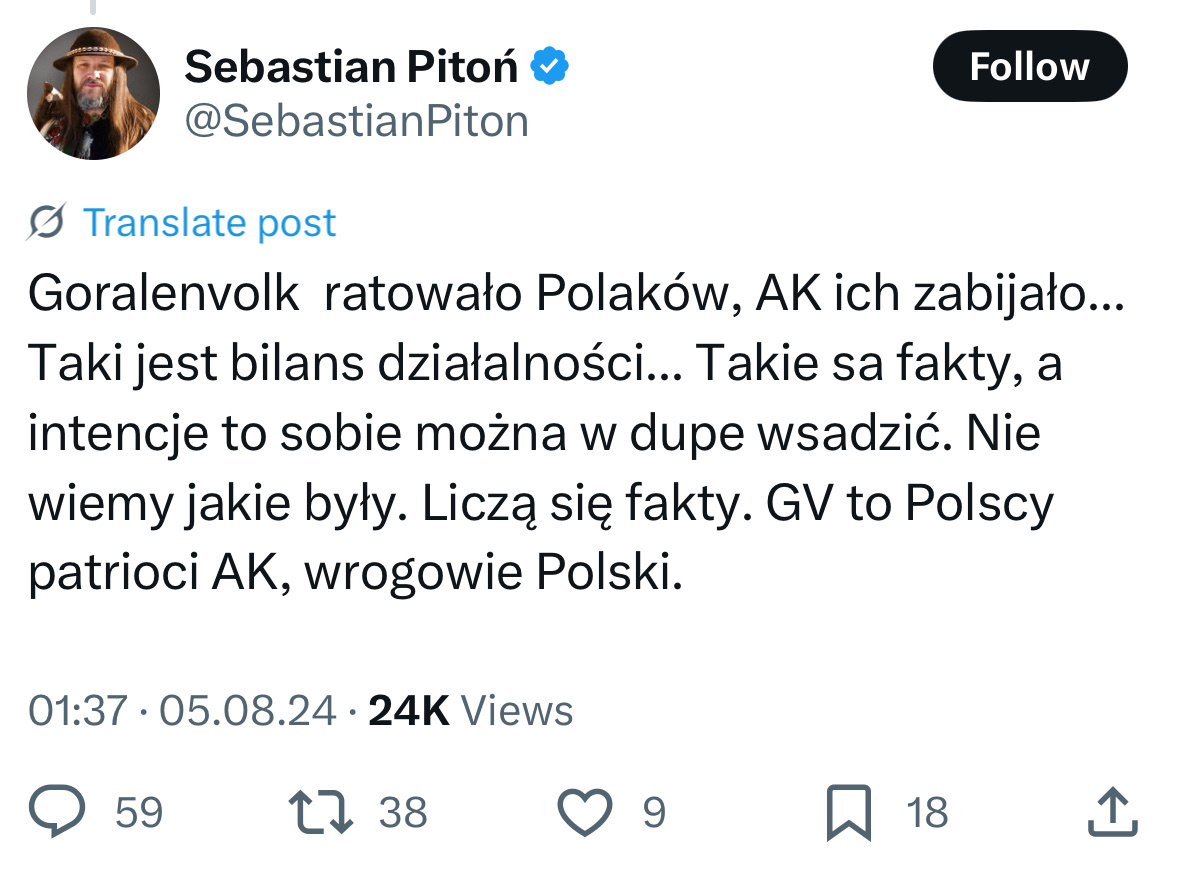 Wypowiedź Brauna na temat komór gazowych w Auschwitz nie powinna być dla nikogo większym zaskoczeniem. Warto przypomnieć, że daun nie jest jedynym politykiem Konfederacji Korony Carskiej, który wybiela działania Niemiec z czasów 2 Wojny Światowej. Poniżej podrzucam wypowiedź Sebastiana Pitonia, w której to twierdzi, iż kolaborujące z Hitlerem goralenvolk to “Polscy patrioci”.