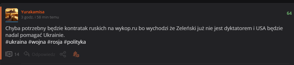 Dodaj tag polityka aby ubić zasięg postu który mówi o ataku na wykop.ru po zmianie stanowiska USA. Trzeba zacząć dodawać polityka do każdego postu #ukraina #rosja #wojna