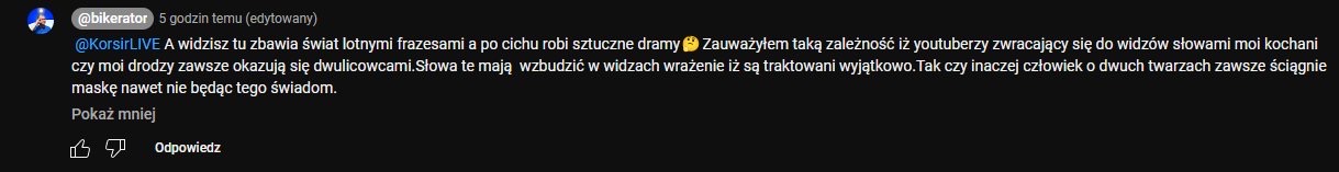 #yanek poruszony został komentarz u bikeratora że to Korsir napisał specjalnie aby pokazać janeczka w złym świetle... no to wyciągam teczkę i można zapoznać się ze screenami co pisał bikerator pod swoim filmem, który miałbyć sponsorowany przez TEMU ale zobaczył że dziadostwo i zrezygnował, przy czym zawiódł się na janku że on wszystko promuje jak leci aby tylko kasa była. Dziwne że komentarz bikerator usunął w ciągu 24h bo niby
