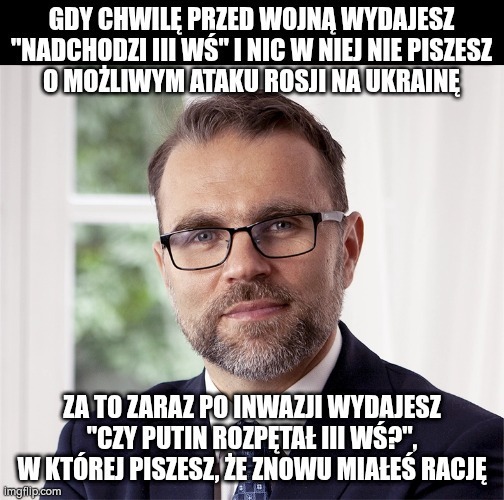 Hej @dowujawafla, dlaczego wstawiasz fałszywe memy na wykop? Chodzi o takie, jak ten poniżej. Piszesz, że Bartosiak nic nie wspomniał o możliwym ataku Rosji na Ukraine w swojej książce. Oczywiście, że wspomniał. Tutaj przykład rozmowy o tym temacie: