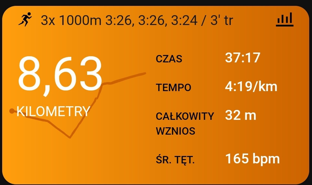 Wyszedłem na dwór z zamiarem zrobienia jakiegoś zwariowańca fartleka, ale lodówa na drodze skutecznie mnie zniechęciła do sprintowania. Zrobiłem sobie więc mocniejszą piątkę.