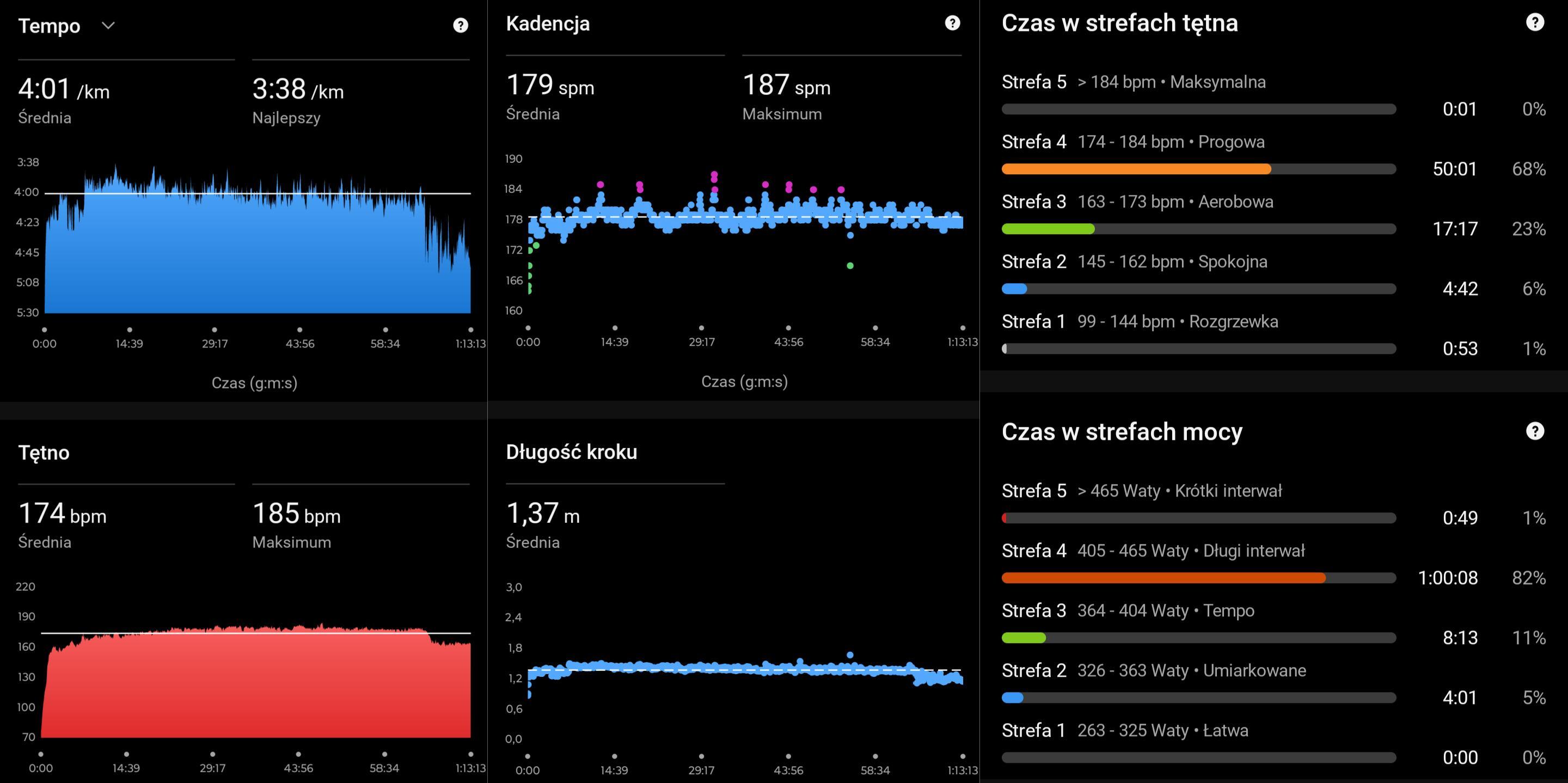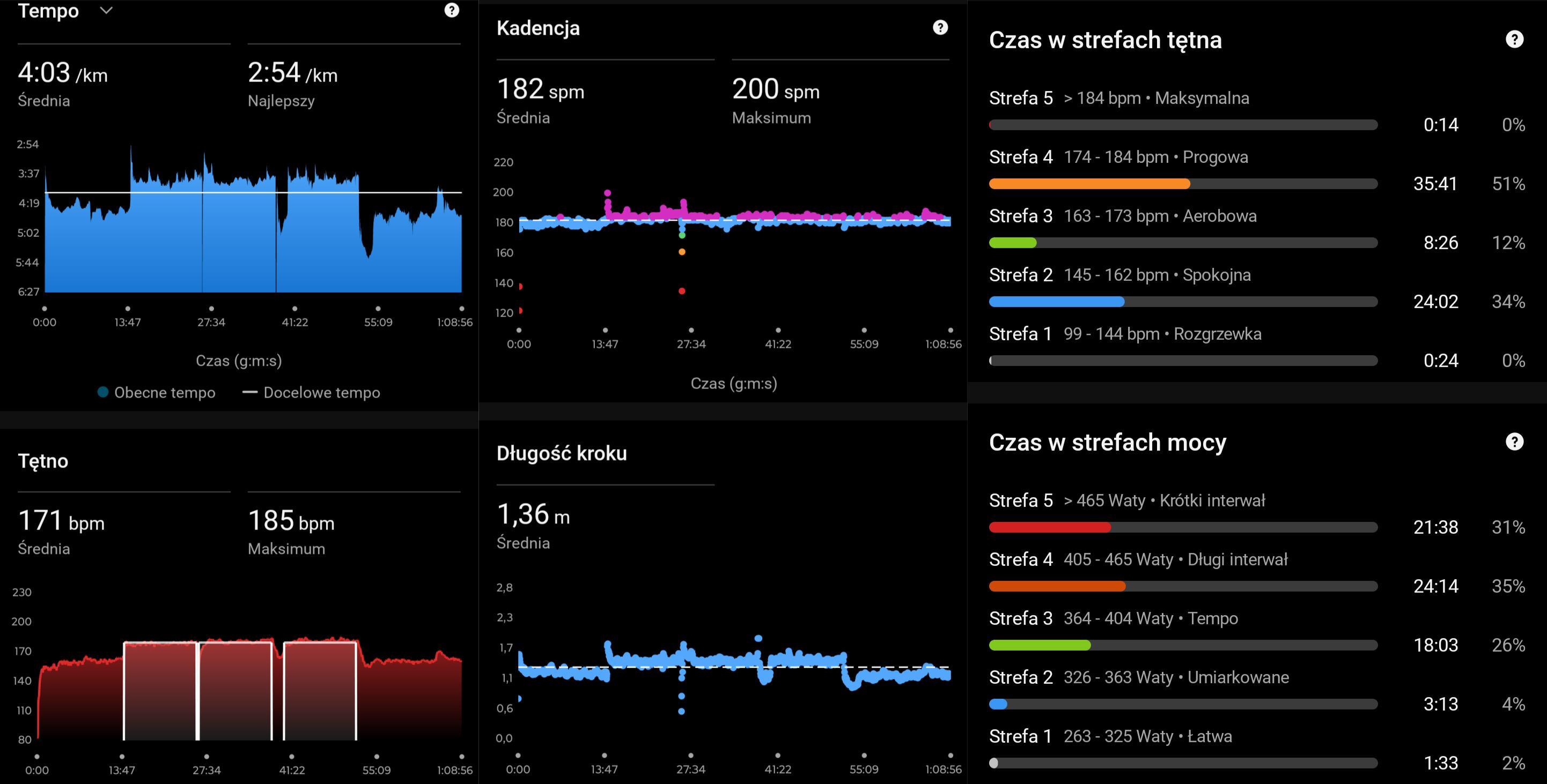 1,6km BS + 15km w tempie maratońskim 3:55/km + 1,6km BS