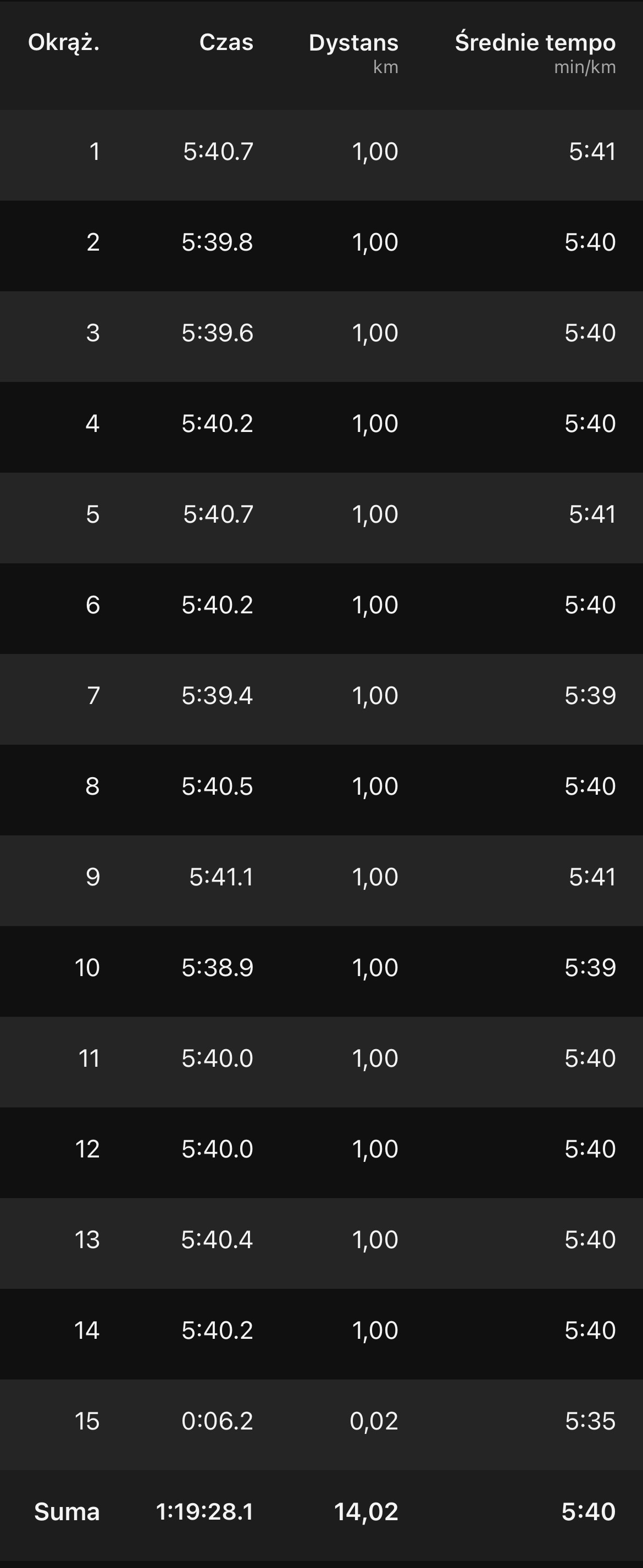 3km @ 5:20/km + 2km @ 5:00/km + 2km @ 4:30/km + 1km @ 4:00/km + 2km @ 5:10/km + 1km @ 4:45/km ᕙ(