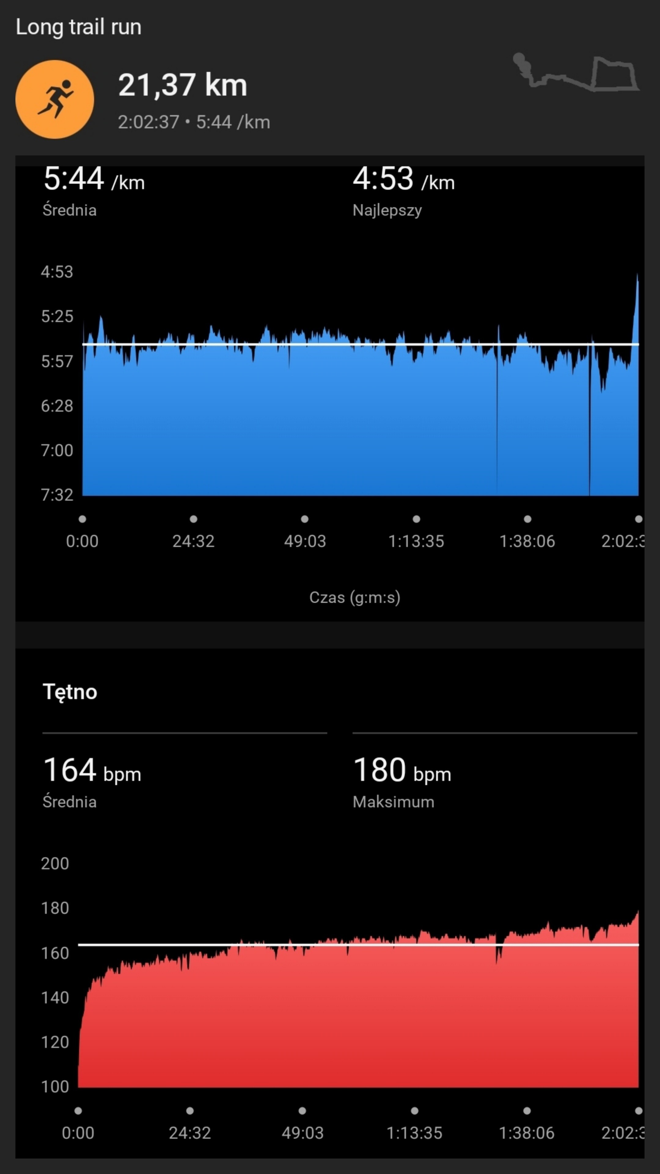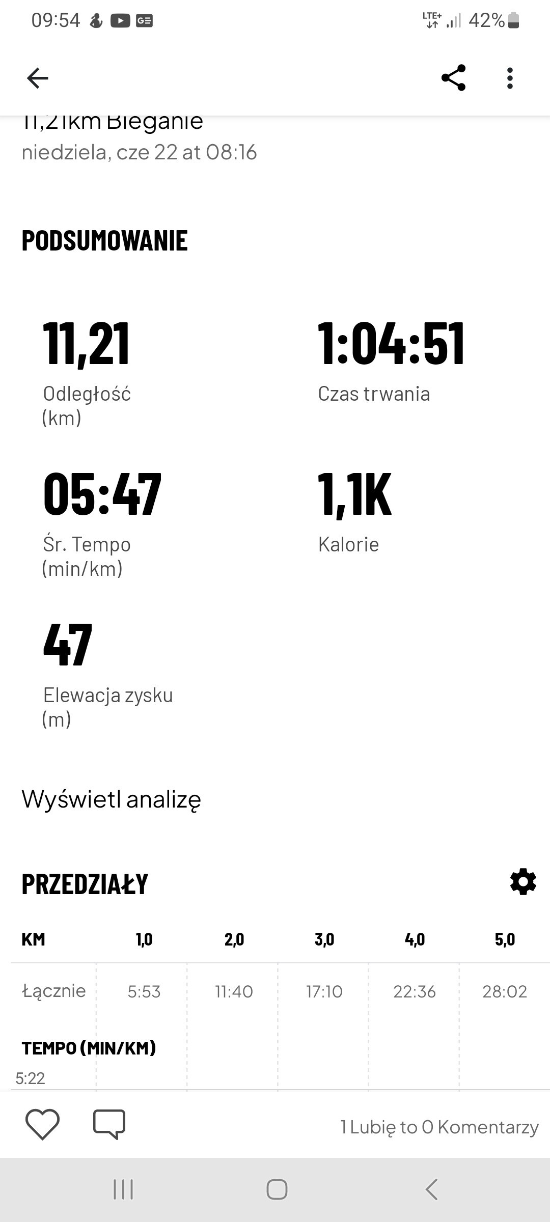 Sobota: Wycieczka biegowa 19.5 km w tym ok 760m wzniosu. Ale się super bawiłam!