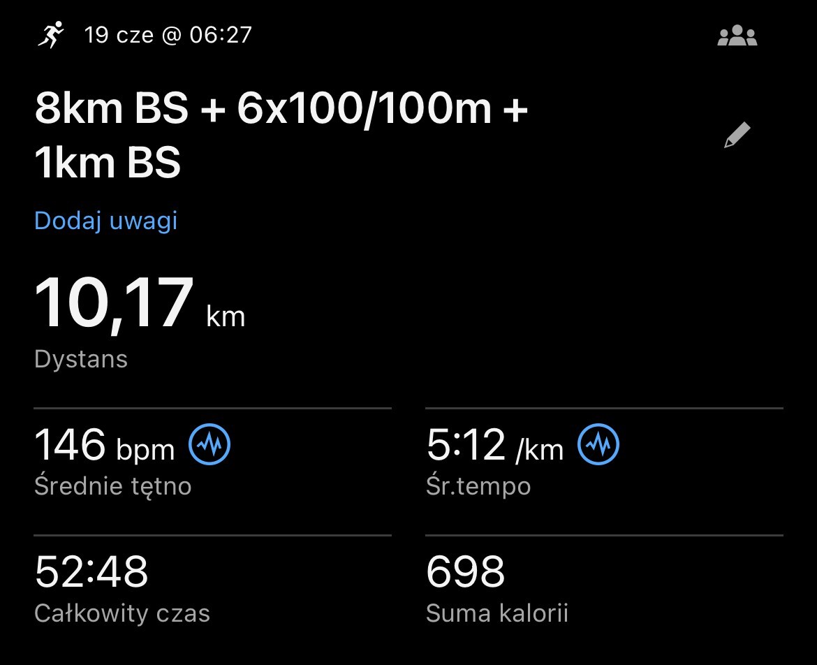 Niedziela: Rozruch i opalanko w postaci 10 km BS