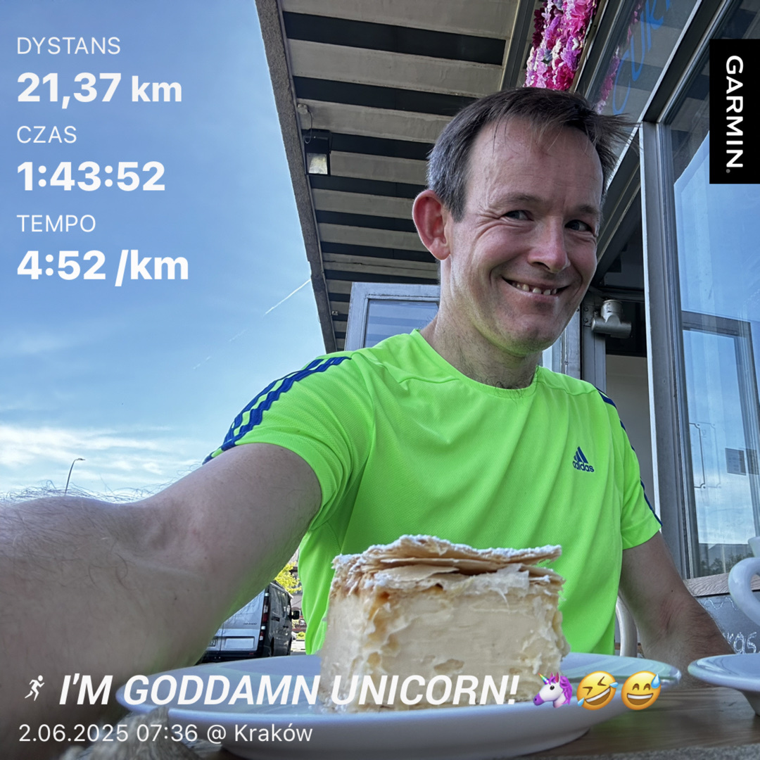 Pycha sprawiła że ustawiłem się za zającami na 3:15. Szło nieźle. W okolicach 40 kilometra jeszcze było ramię w ramię i w tym też momencie głowa wysłała silny sygnał "kolego my tak szybko i długo nie biegamy" no i tego kryzysu już nie przeskoczylem. Trzeba było znacząco zwolnić. Z wyniku jestem mega dumny. Pierwszy maraton w październiku nie poszedł tak jak chciałem i zamiarow łamania 3:30 wyszło