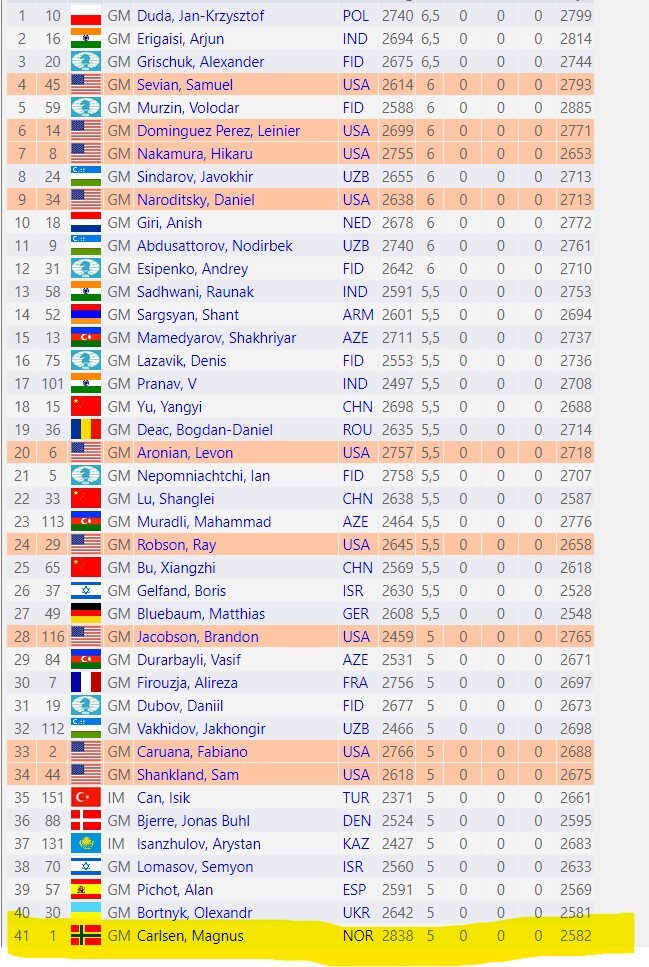 @scully: Fischer wycofał się z Turnieju Pretendentów (szachy klasyczne) po regulaminowym sporze z FIDE mając 8,5 pkt z 10 partii i zajmując samodzielnie 1 miejsce w turnieju (Sousse 1967). Carlsen wycofał się z Mistrzostw Swiata w Rapidzie po regulaminowym sporze z FIDE mając 5 pkt z 8 partii i zajmując 41 miejsce w turnieju (New York 2024)
