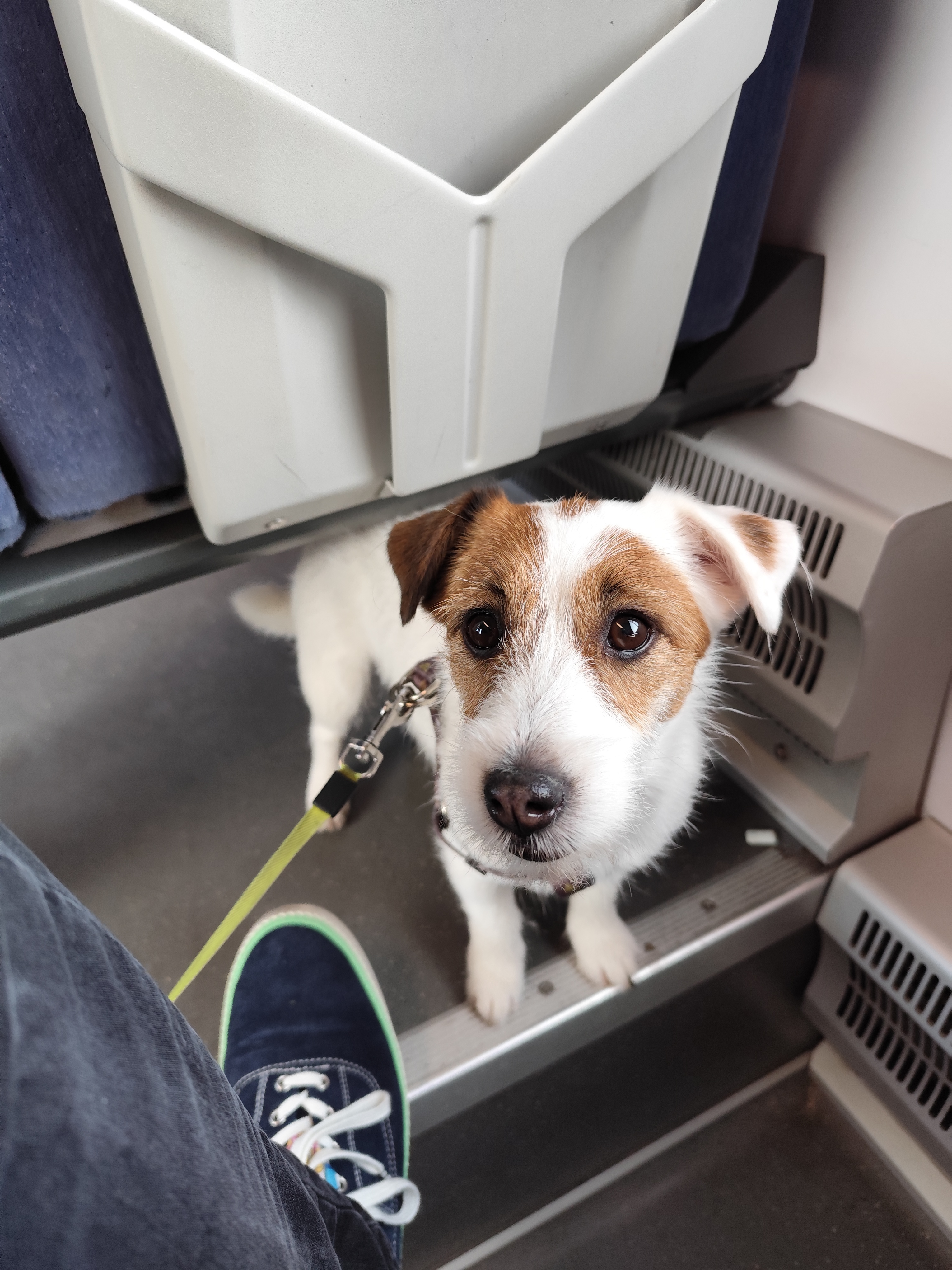 Właśnie mi przemiły Pan konduktor groził wezwaniem policji, bo jadę z psem bez kagańca w pociągu. Ja rozumiem, jakby to był wielki bydlak albo agresywna rasa.