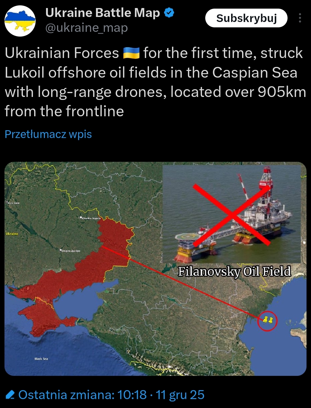 Ukrainian drones just scored a historic first—shutting down Russia's massive Filanovsky oil platform in the Caspian Sea. Lukoil's key site was hit with 4+ strikes, halting oil & gas from 20+ wells. This beast holds 129M tons of oil & 30B m³ gas—exports via Caspian Pipeline now crippled.