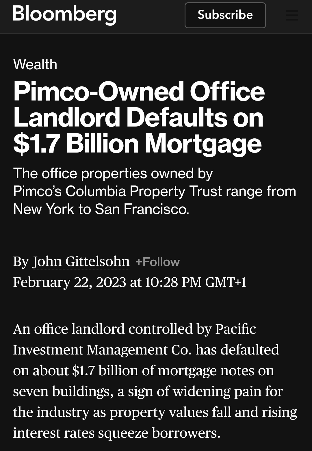 @strzelec-wiborowy: to jest promil tego, co posiada pimco, i pewnie większa część jest do odzyskania. A fundusze nieruchomości lewarowane hipoteką są śmieciami właśnie dlatego - czasami do nich Marcin dzwoni. Jeśli chodzi o nieruchomości w stanach, to w takim NY to jest plaga i patologia, bo jest kilka mechanik które powodują, że zalewarowany landlord nie może opuścić ceny najmu sprzedać też, i dlatego tysiące lokali w drogich lokalizacjach stoją puste