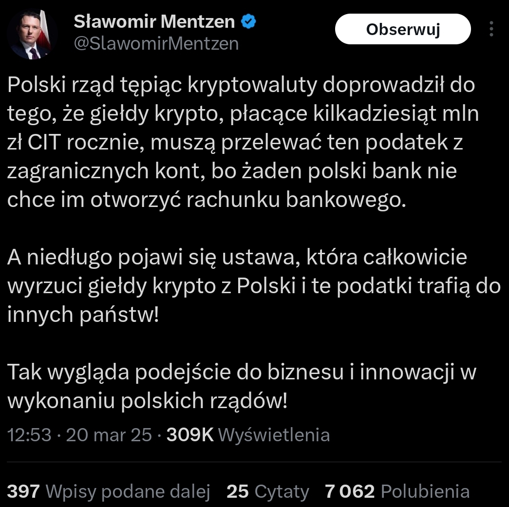 Możecie zacząć się bać... gościu, którego partia nie potrafi rozliczyć się poprawnie z kampanii wyborczej, chce się brać za wasze kryptowaluty. Szumne obietnice, a później będzie wtopa po całości XD
