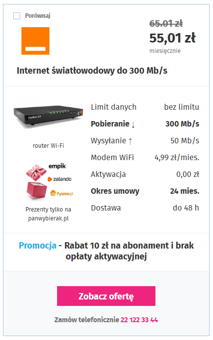 Zobacz ofertę NJU. Nie wiem czy to jeszcze obecne ale mam te same parametry z 49 zł a umowa bez terminową z opcją wypowiedzenia jak platforma streamingowa. Anuluje i leci do końca opłaconego okresu.