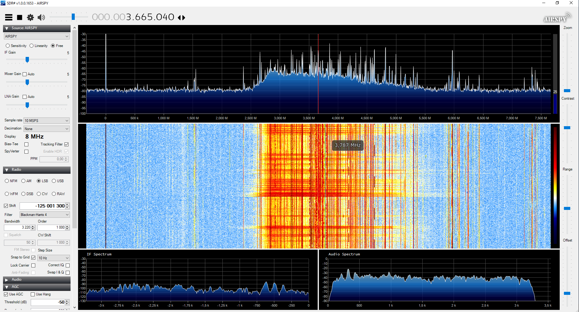 @pierzak: w poprzednim poście nie mam widocznego 10mhz pasma.pp prostu przy dużych antenach sygnał szczególnie że stacji radiowych może skutecznie przyblokować odbiór słabych sygnałów. Zależy to w gruncie rzeczy od dynamiki, którą airspy ma dość dobra,ale nie zaszkodzi doprowadzić tylko ten chciany sygnał, dzięki czemu nie zostanie on "przyćmiony" przez niechciany sygnał spoza pasma.