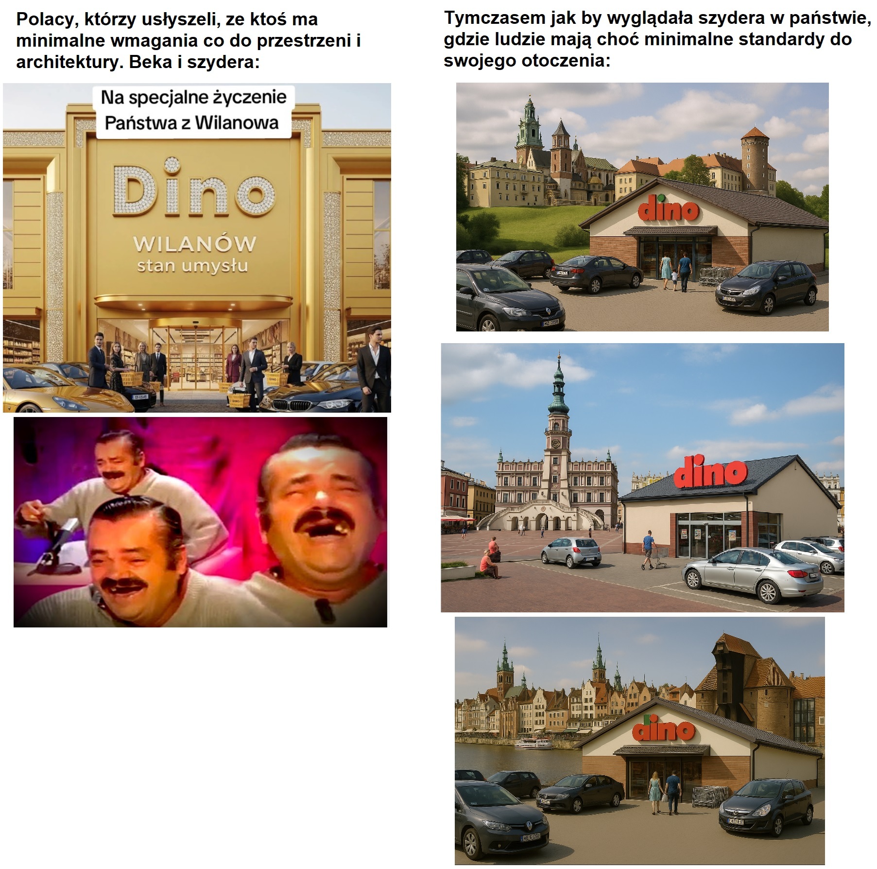PobierzTam nie chodziło o sam fakt sklepu Dino? Poza tym litości, nie ma co porównywać Miasteczka Wilanów do zabytkowych starówek. Jedyne co można pozytywnego powiedzieć to że urbanistycznie siatka ulic jest okej i jakoś się stara urbanistycznie np.:kontynuować oś Pałacu Wilanowskiego. Ale estetycznie to już żadnych nawiązań nie ma, to taka sama developerka jak wszędzie indziej.