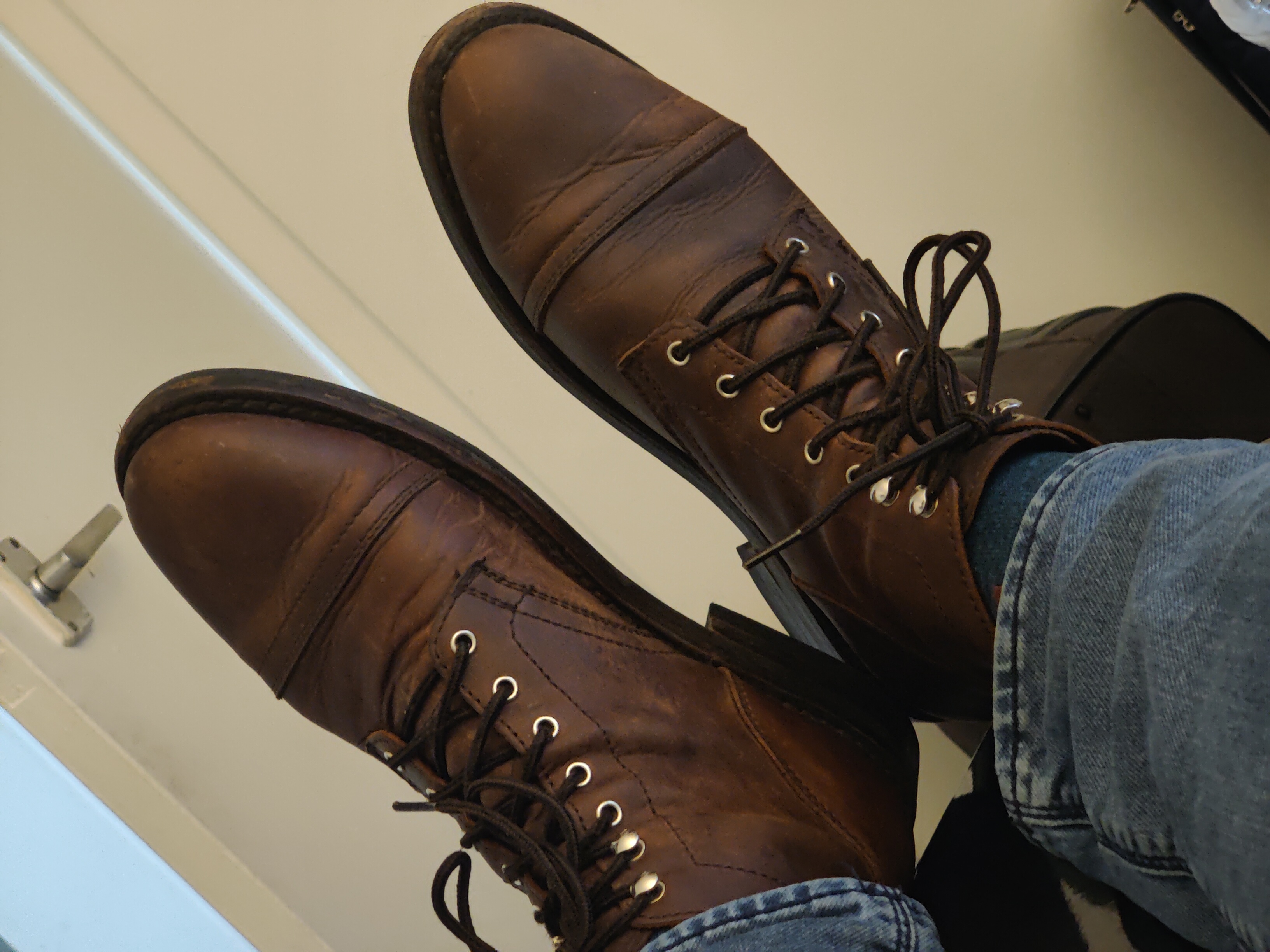 Wyglądają jak na picrel. O co k---a chodzi? Pęknięcia nie ma, ale te zgięcia są paskudne, co dziwne - tylko na lewym bucie.