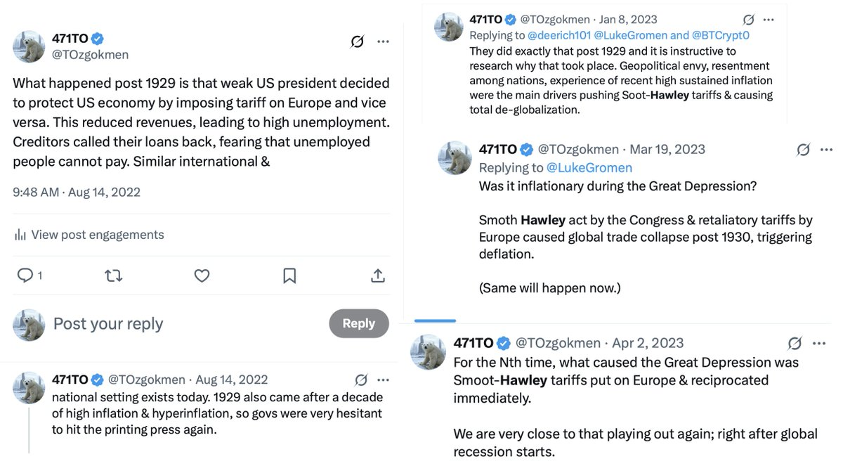 @tom-ek12333 trochę inny okres i target. Tamte cła były wprowadzane w czasie wielkiego kryzysu. Te są głównie nakierowane na Chiny i zmianę struktury światowego handlu, renegocjacje umów itp. Wydaje się że cła same w sobie nie są celem.