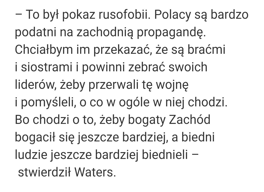 Roger Waters kompletnie upadł na głowę, ale to nie wszystko, bo jak już leżał na glebie, to na jego pusty łeb zawalił się jeszcze sufit. Co za upadek... ¯\(ツ)/¯