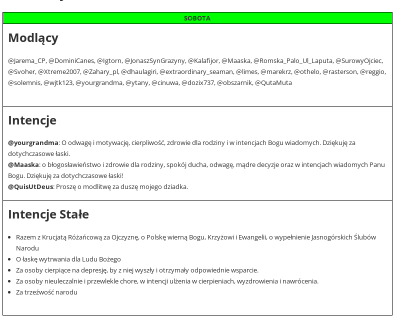 Jeśli masz kłopot, potrzebujesz wsparcia, chcesz komuś pomóc, zostaw intencje w komentarzu. Obejmie Was modlitwą kilkadziesiąt osób, których nicki znajdziecie w grafiku.