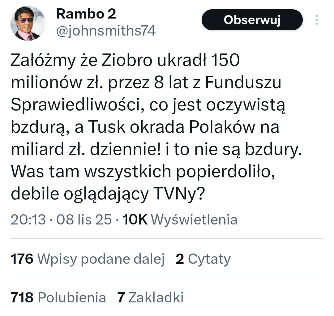 Zioberek to chyba redaktora Mazurka nagrał Pegasusem bo chłop się dla żadnego innego polityka tak nie stacza przypominam, że jak było przeszukanie u Ziobry to prawie płakał i błagał Hołownię żeby zostawili Zbyszka w spokoju