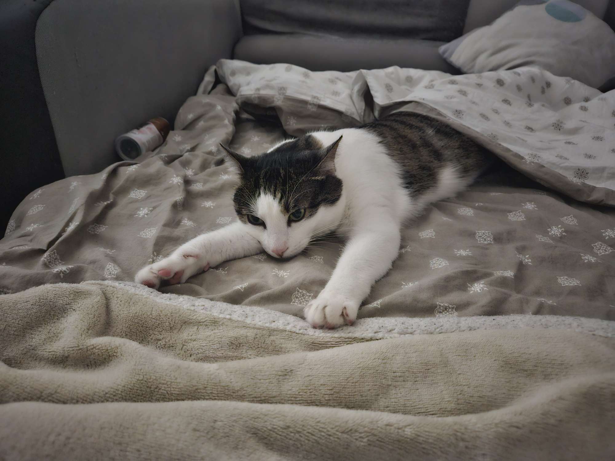 Czasem przypomni mu się młodość i nagle podbiegnie za własnym cieniem, troche niezgrabnie, jakby nie pamiętał że ma artretyzm stawów. Czasem nagle zaatakuje ręke którą go miziam. Czasem już nie zdąży z dwójeczką do kuwety.
