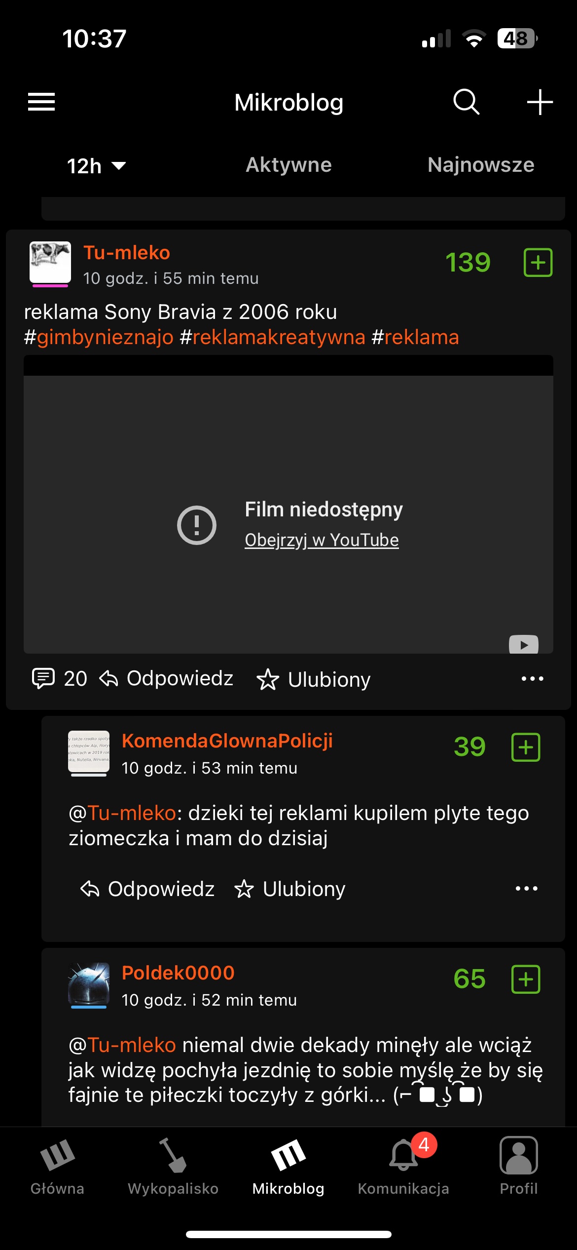 Kiedy w końcu ktoś to naprawi i będzie można odtwarzać filmy z yt w apce? Nawet nie ma gdzie kliknąć żeby przekierowało na yt #ios #wykop #apple #aplikacjawykop