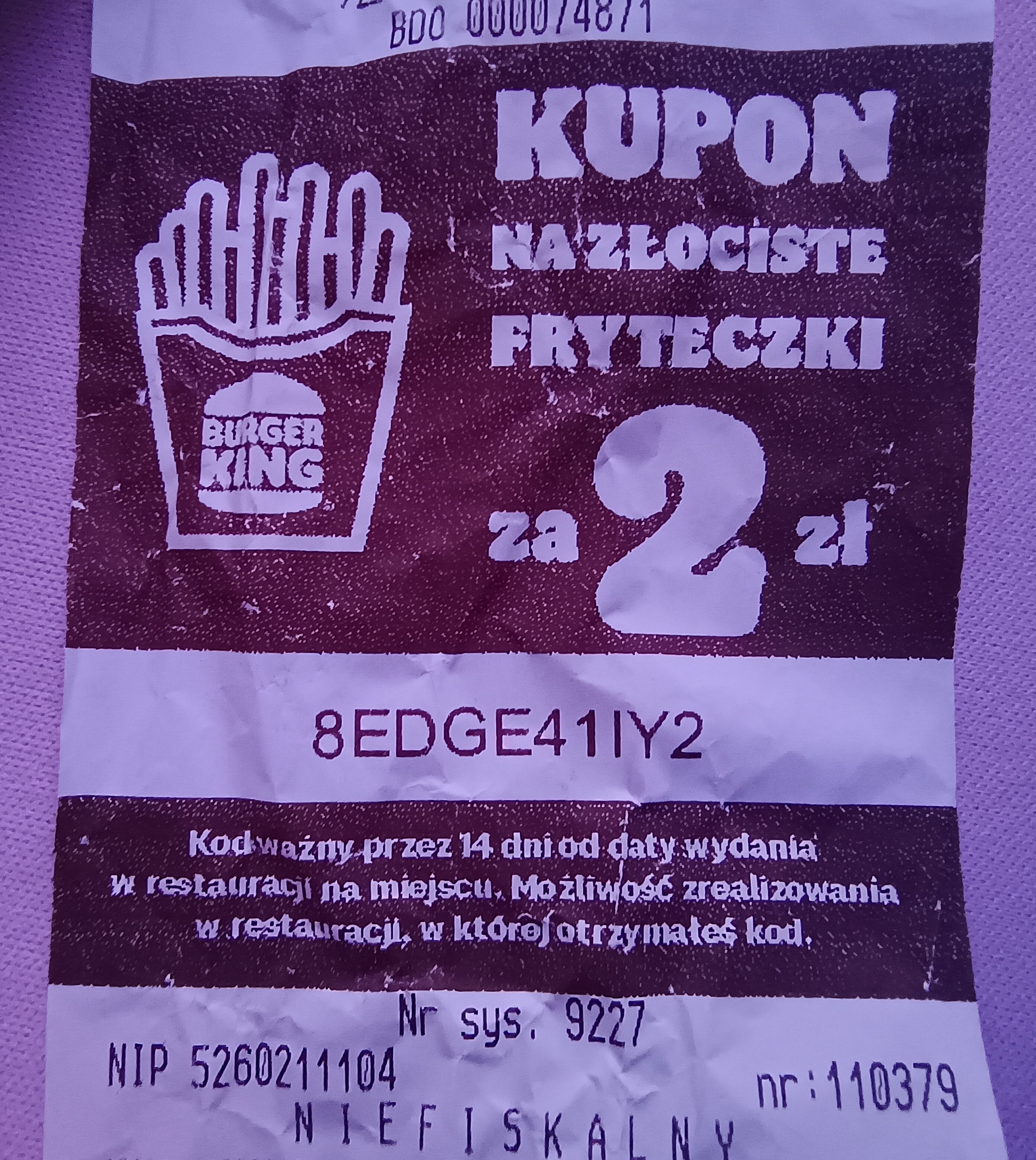 Kupon na frytki za 2 zł, ważny do 30 czerwca w Burger Kingu na MOP Wirek.