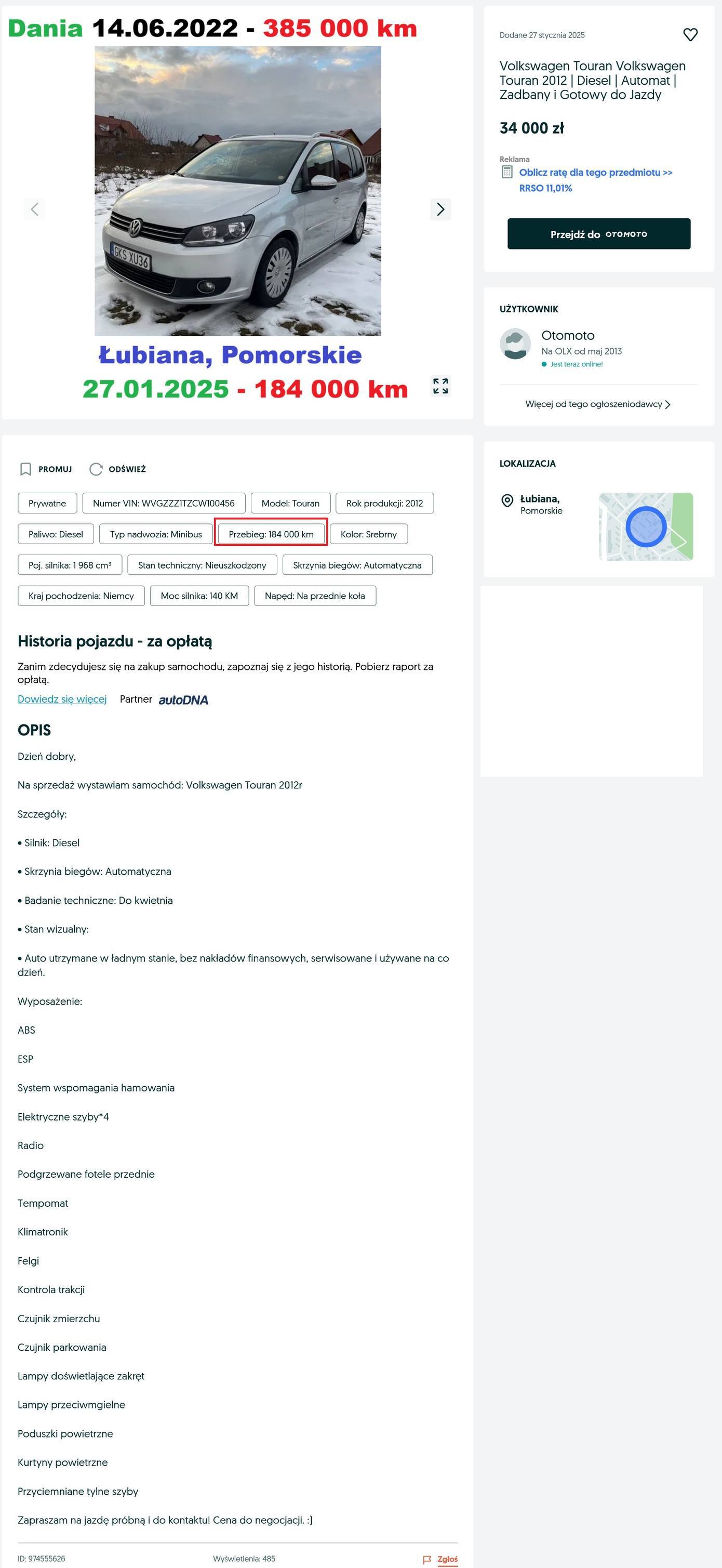 Uważajcie na to ogłoszenie, jest zapewnione że auto jest bezwypadkowe, po sprawdzeniu raportu Vin wychodzi co innego, w 2011 była szkoda wyceniona na 30000-50000. Link do do aukcji i raportu VIN poniżej. VIN: SHHFK2760AU004546https://www.otomoto.pl/oferta/... https://www.autodna.pl/s/yY2rh...