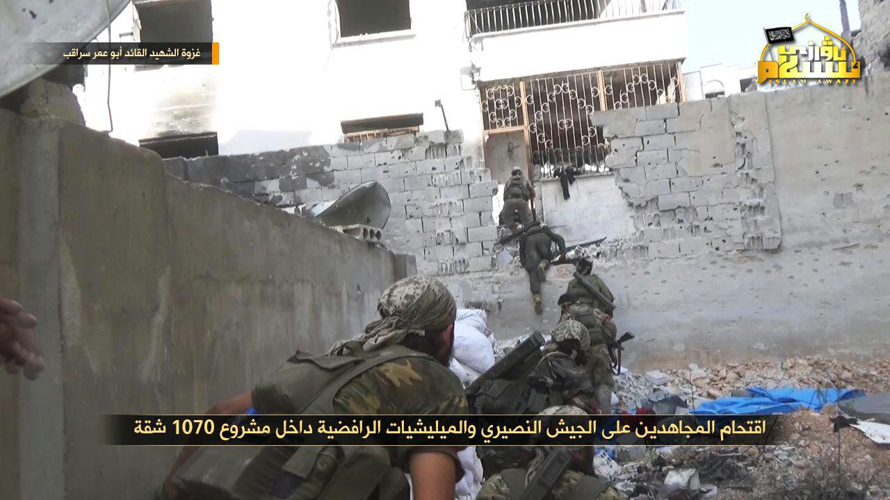Po zajęciu dzielnicy Al Assad (7) i strefy przemysłowej w Binyamin, następnym celem Armii Podboju stała się dzielnica Zahraa (2). 29 października ruszył atak na wojskowe umocnienia (1) znajdujące się na przedpolu blokowisk Zahry (2). Dżihadyści szybko zdołali opanować tamtejsze farmy, park rozrywki