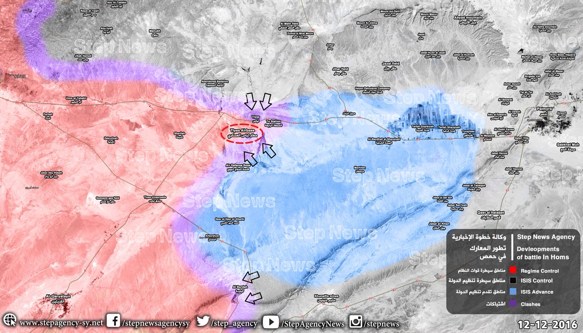 Wszystko wskazuje na to że IS chcę okrążyć bazę i odciąć wszystkie drogi dojazdowe. Na obecnym etapie Assadowi została już tylko jedna droga ta od zachodu (Homs->Baza T4->Palmira), od wschodu jak już wiemy (Palmira) została przejęta, z najnowszych informacji wynika że droga od południa(Quaryatayn) również została przecięta przez IS..